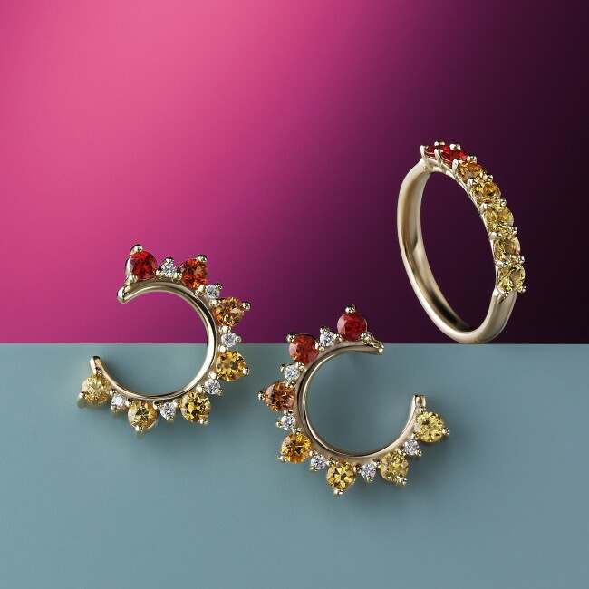 Season 13 Multi-coloured Sapphire earrings and ring