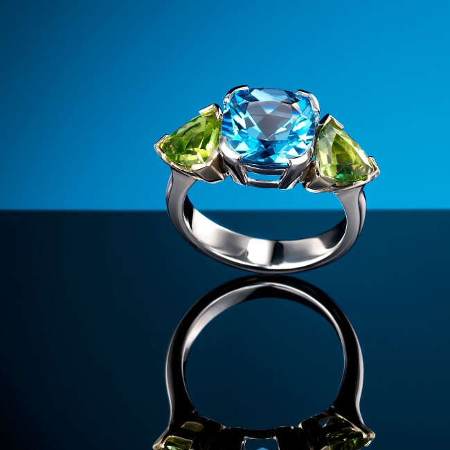 Season 10 Trillion cut Tanzanite and Diamond ring