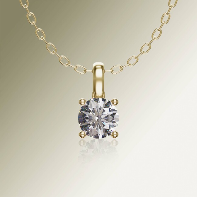 Engagement Pendant Collection Yellow Gold 4-Claw Solitaire Round Diamond Pendant