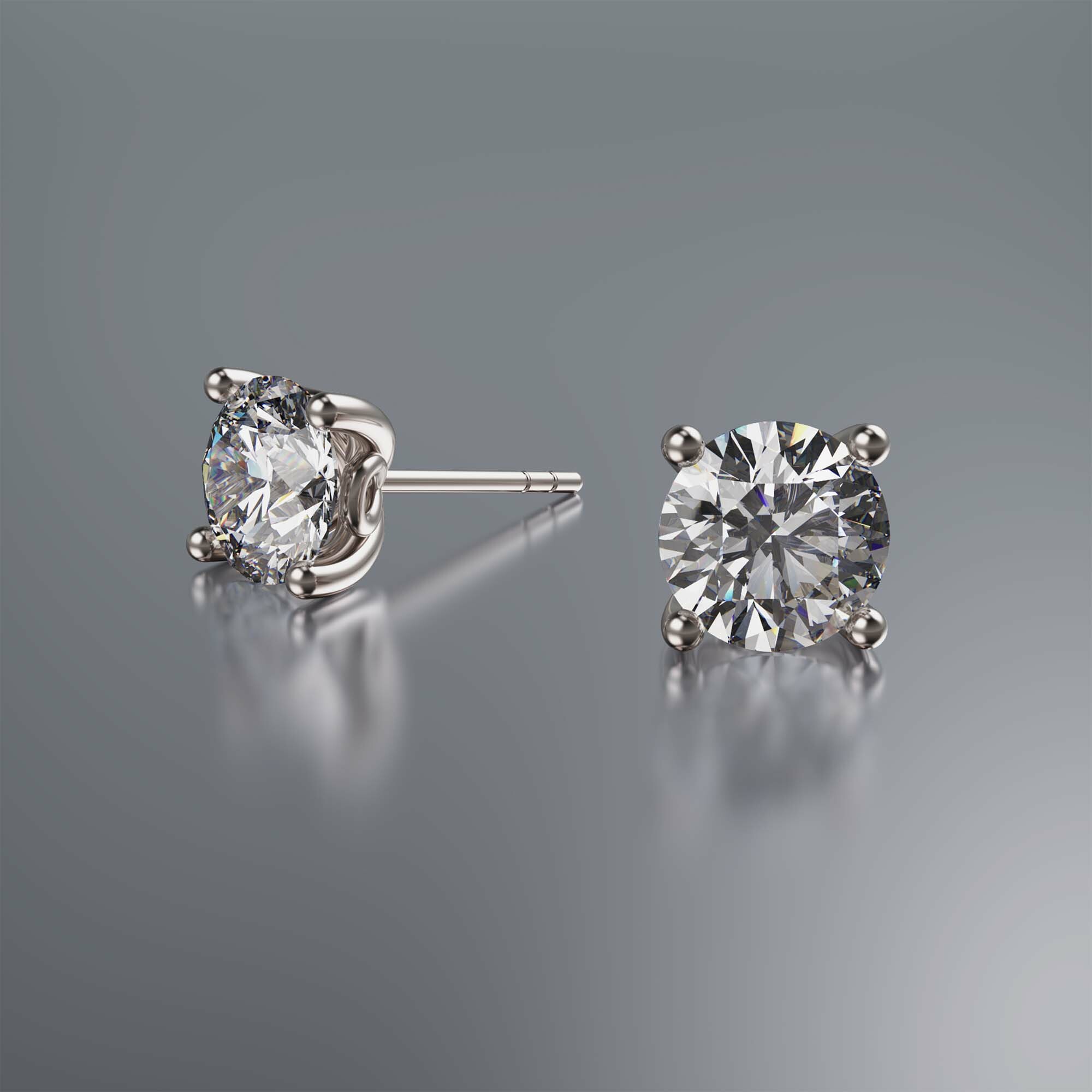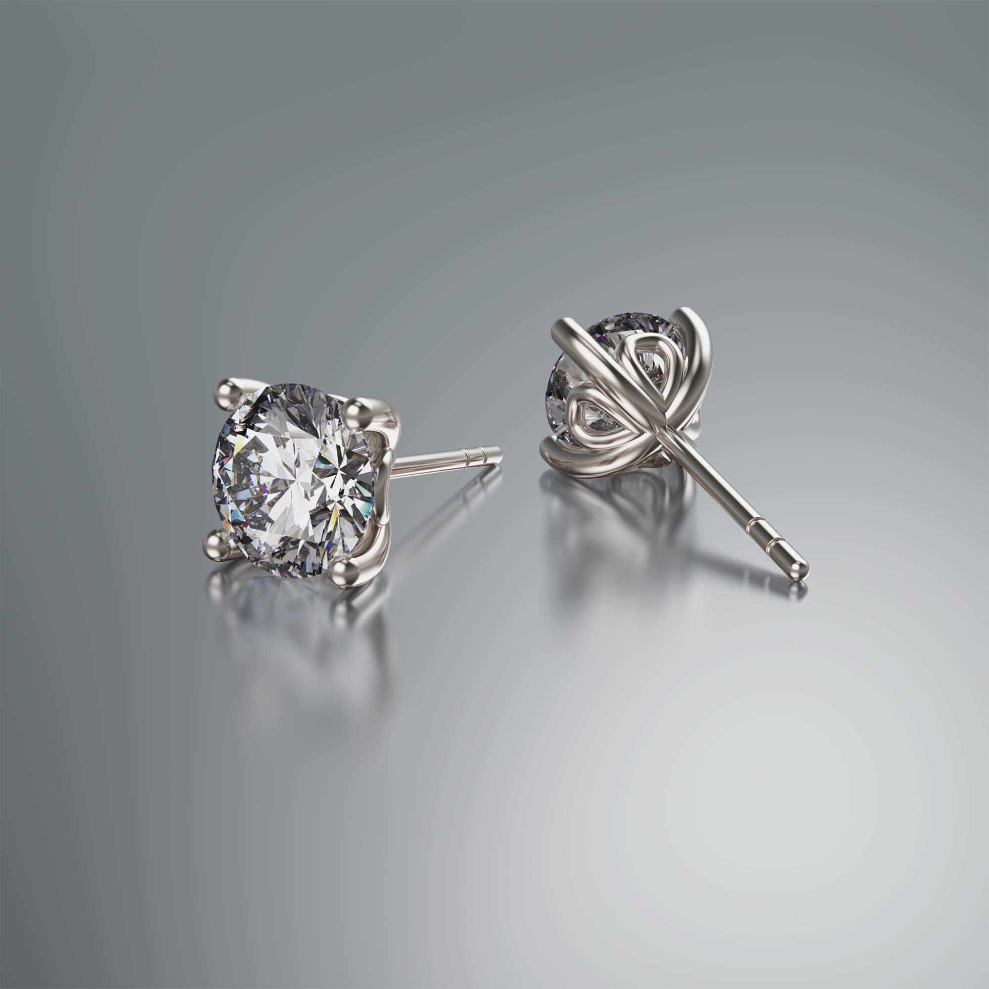Platinum 4-Claw Solitaire Round Diamond Earrings