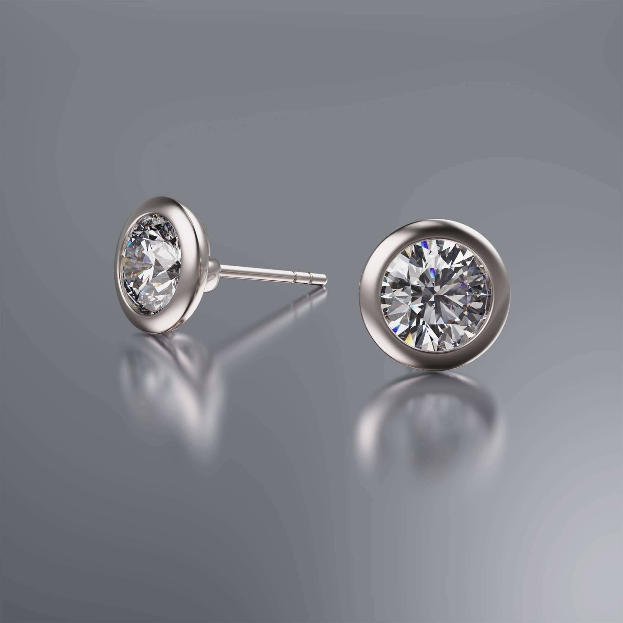 Platinum Tube Solitaire Round Diamond Earrings