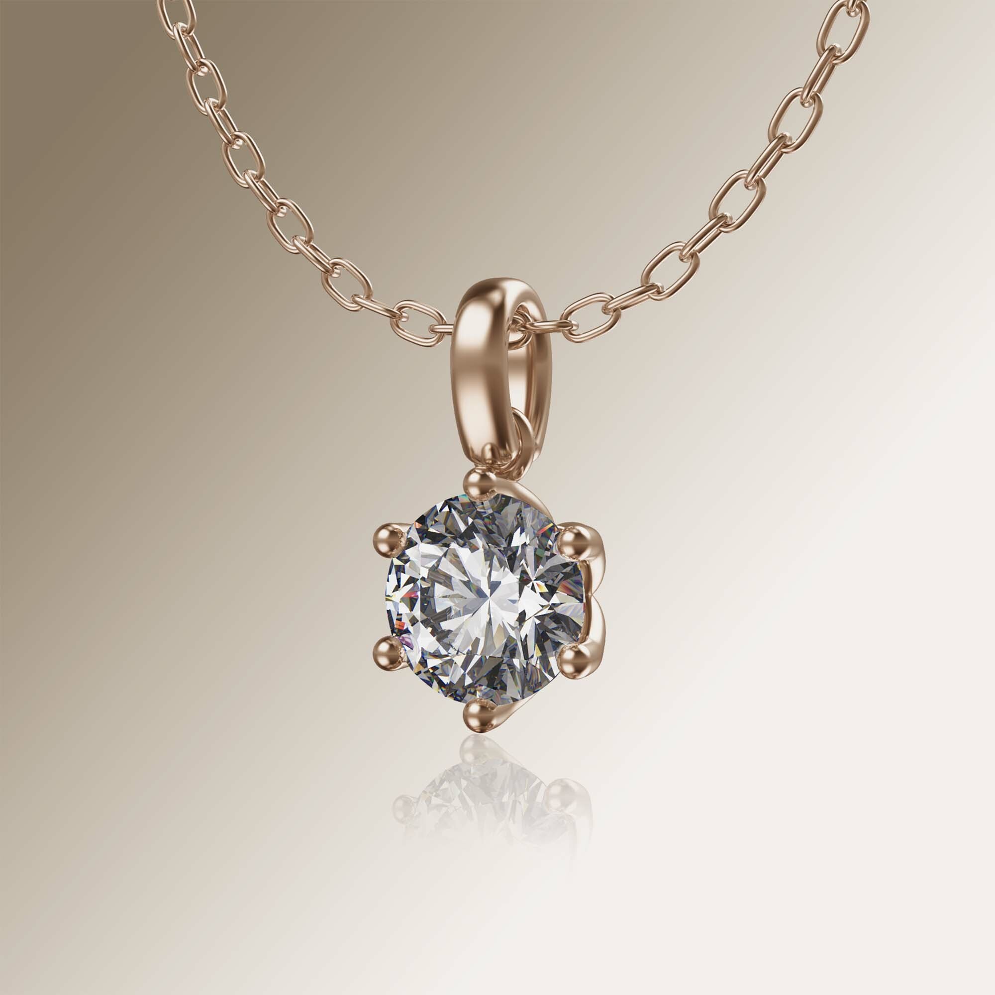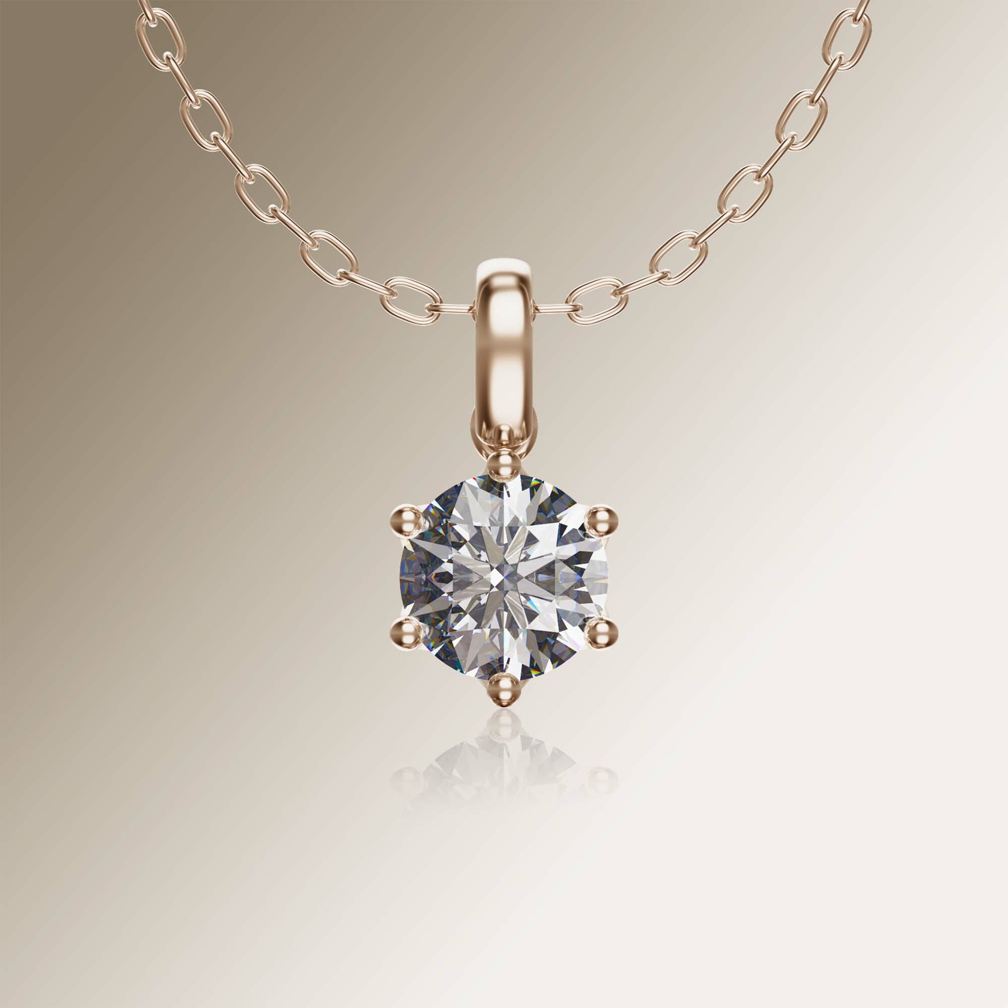 Rose Gold 6-Claw Solitaire Round Diamond Pendant