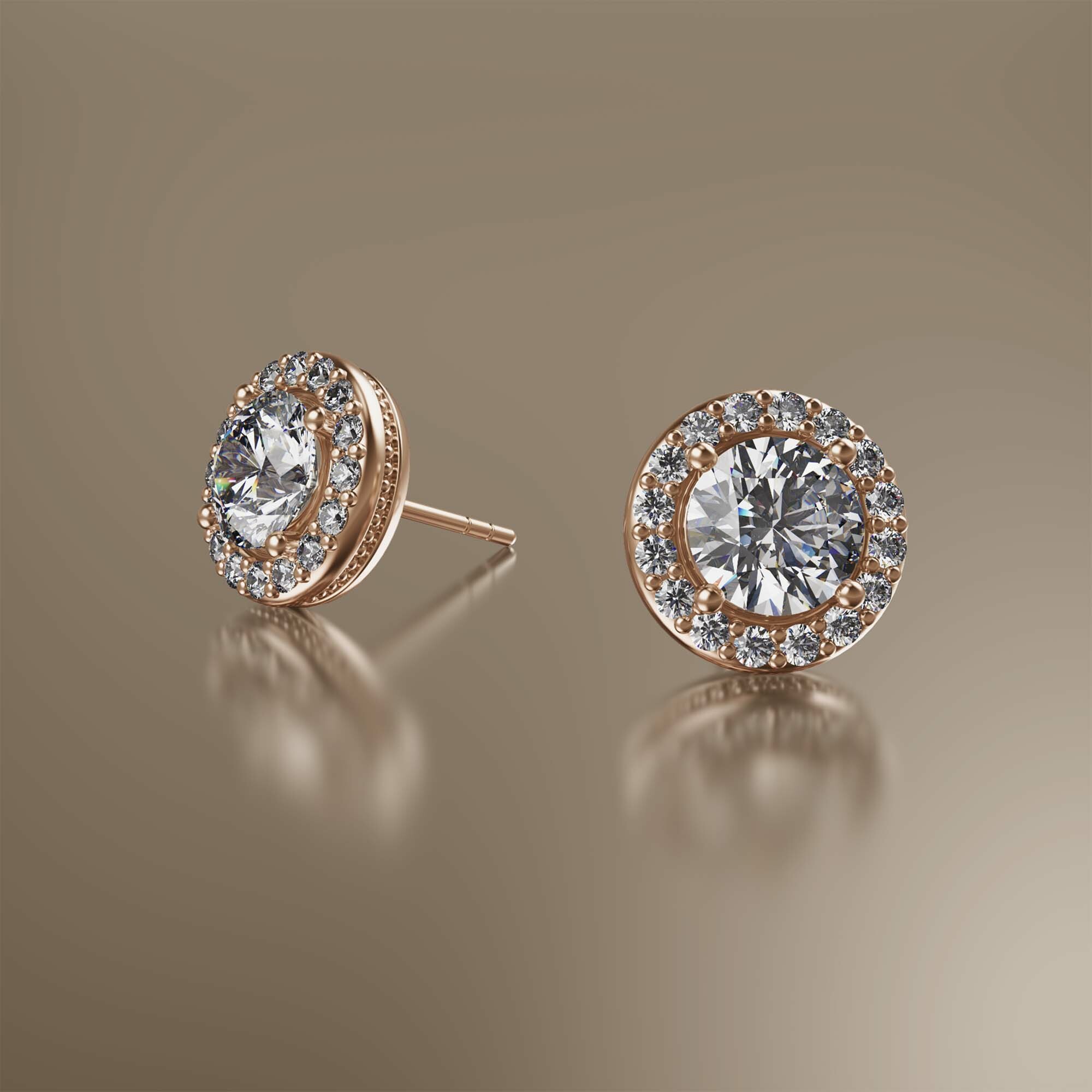 Rose Gold Halo Round Diamond Earrings