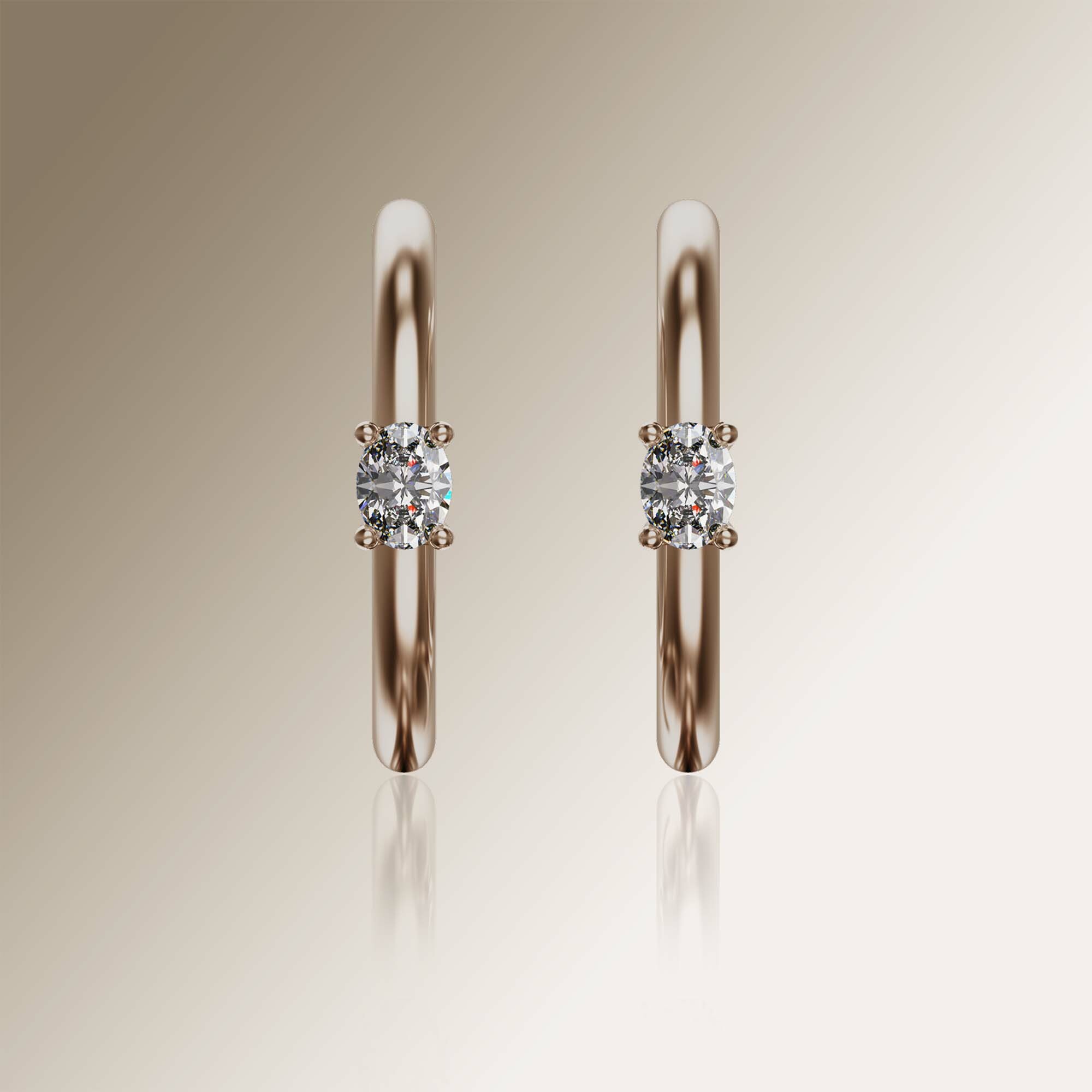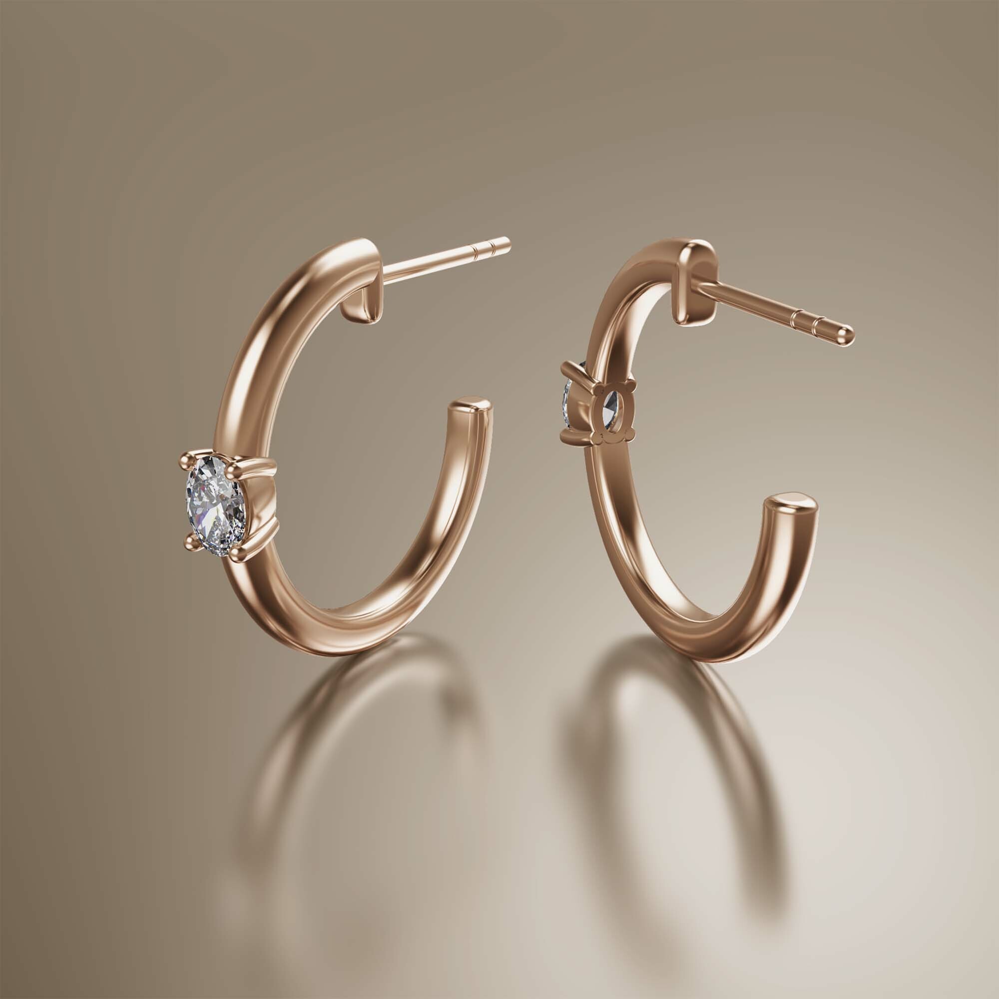 Rose Gold Oval Claw Solitaire Diamond Hoops