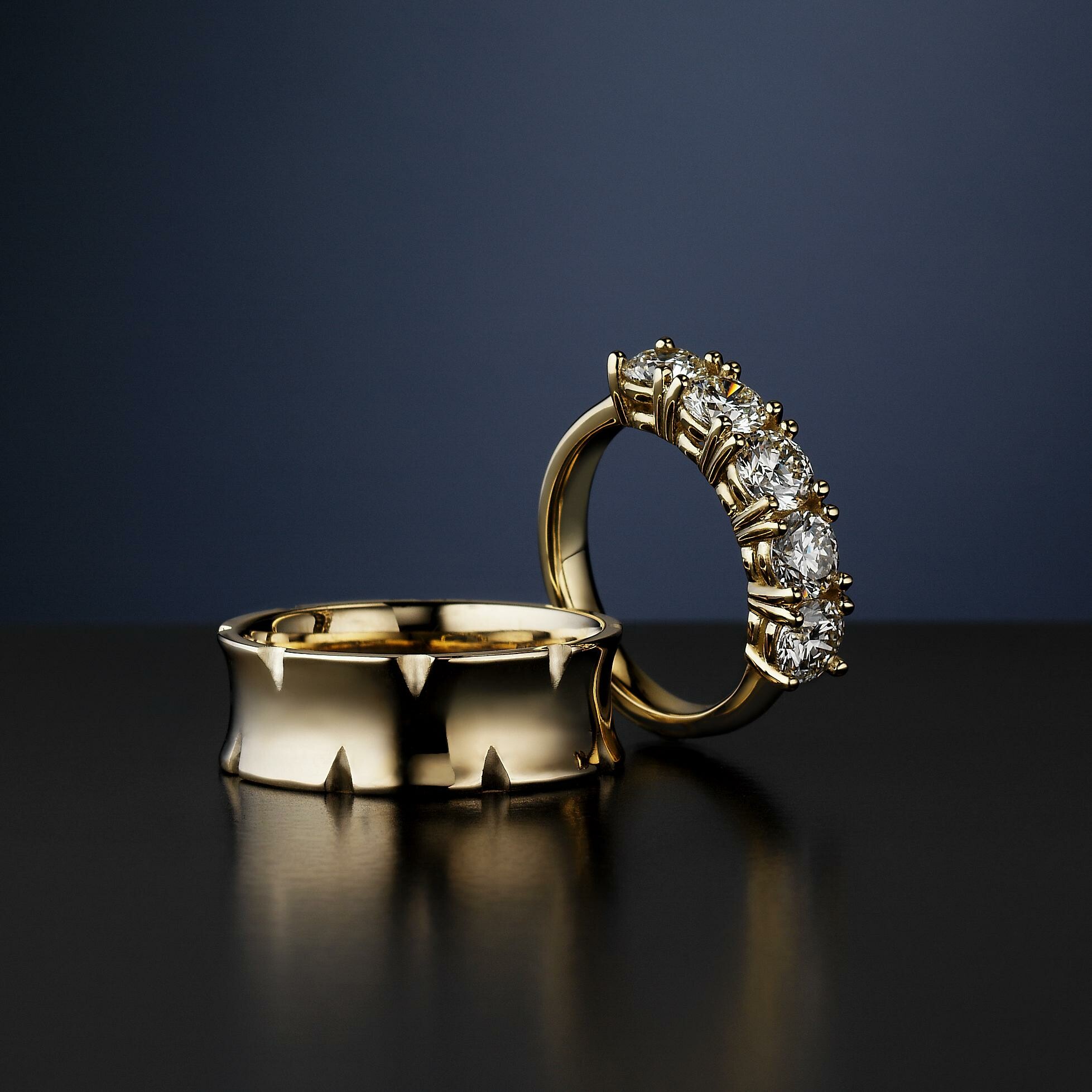 - 18K Yellow gold Diamond ring, with five round brilliant cut Diamonds of total weight 2.5ct
