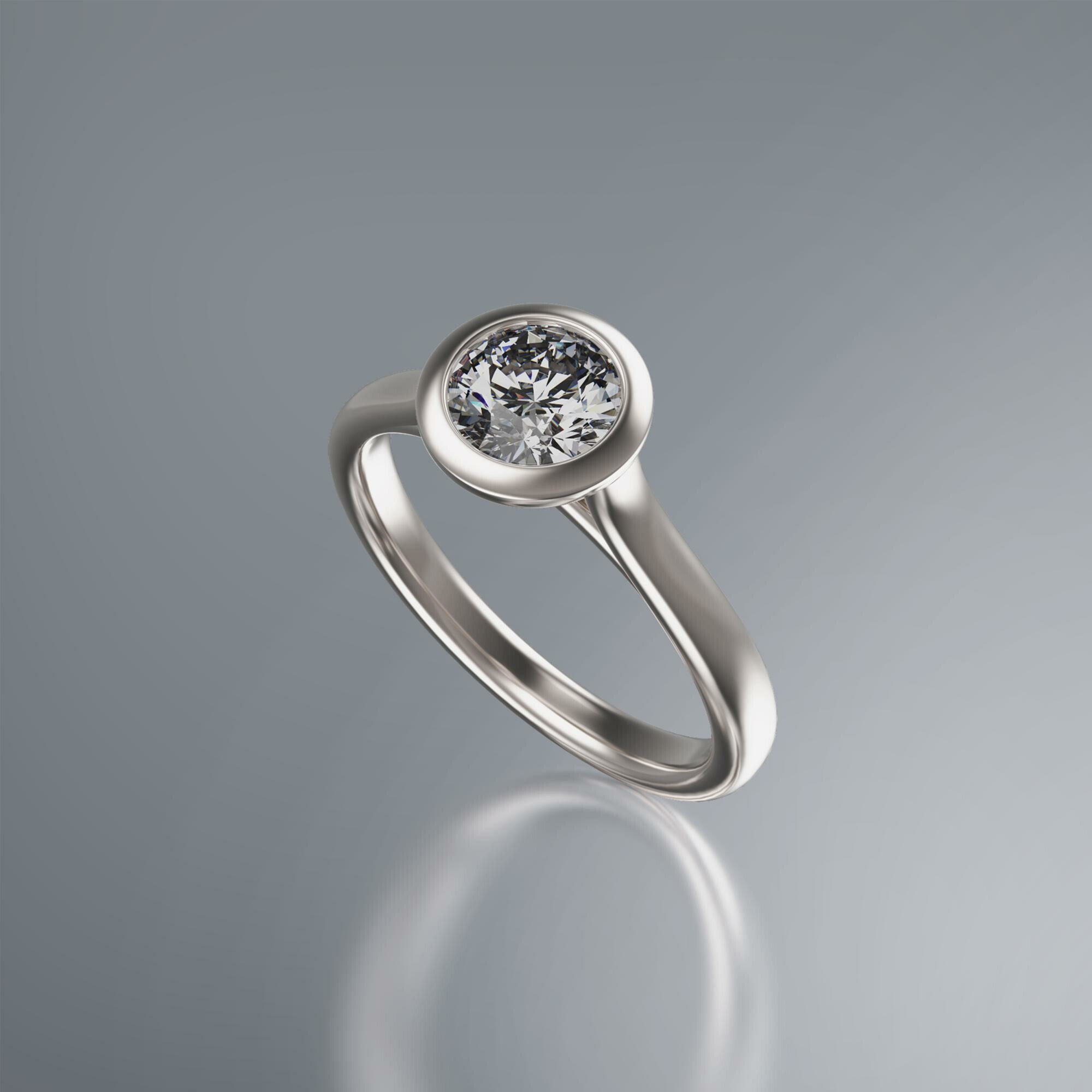 White Gold Tube Solitaire Round Diamond Ring