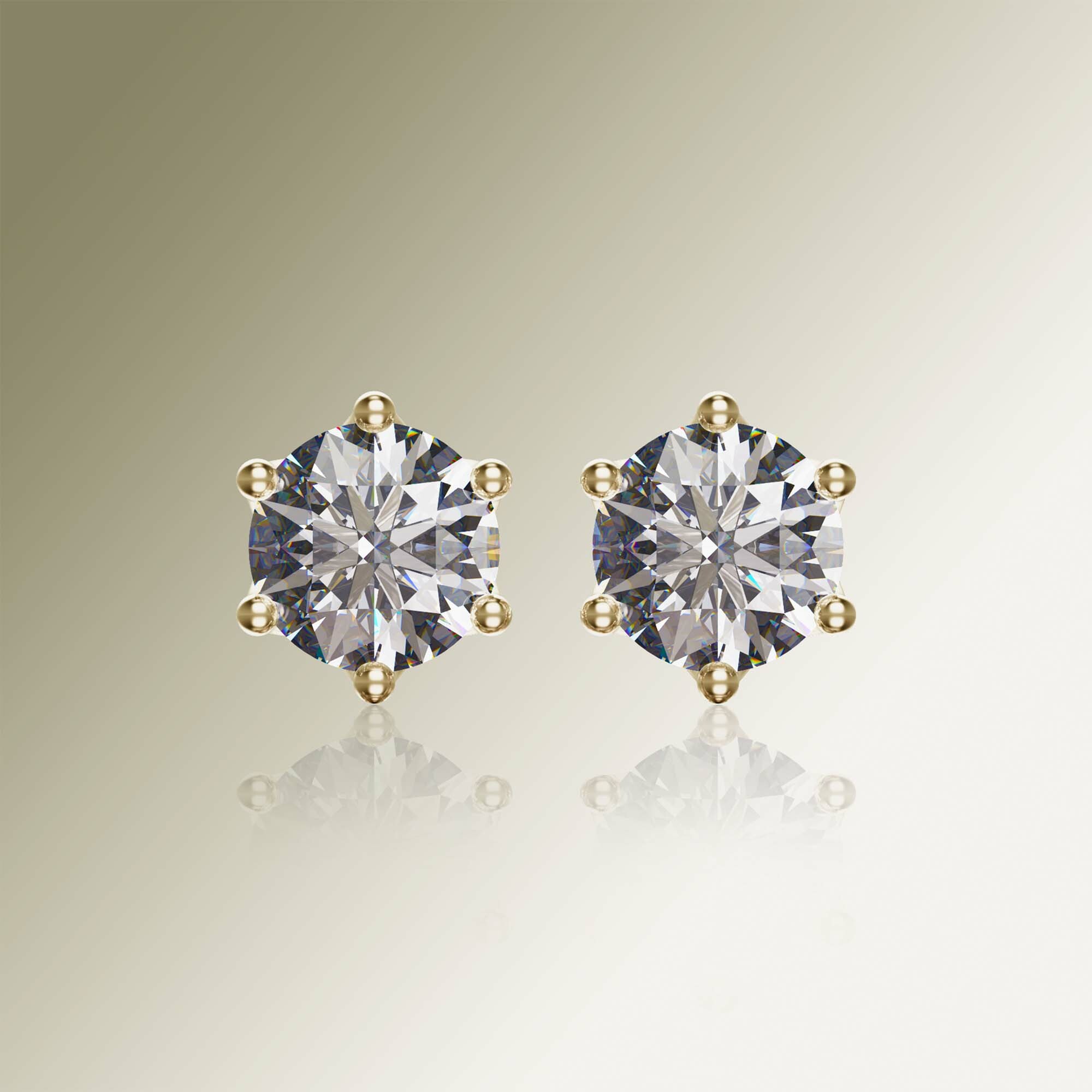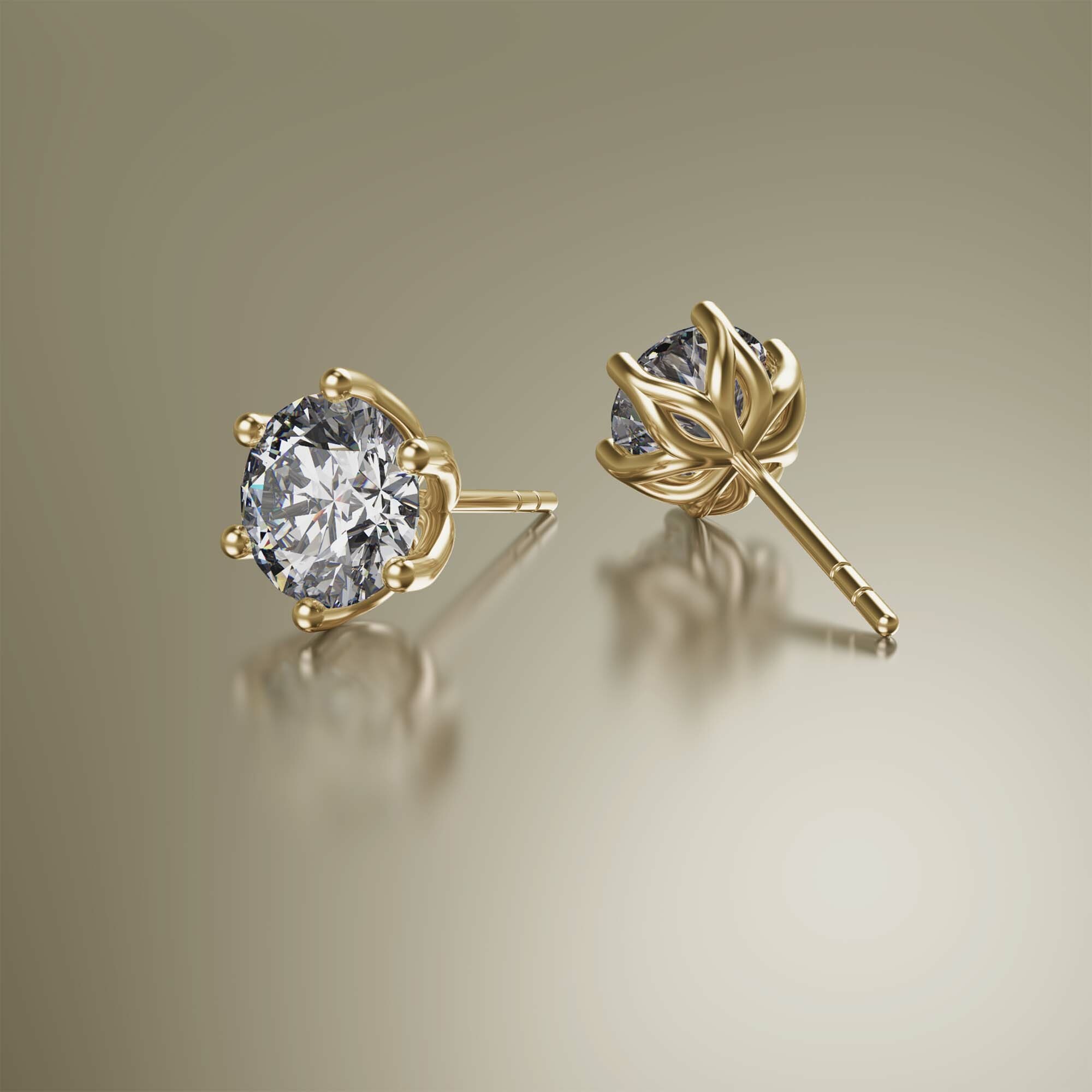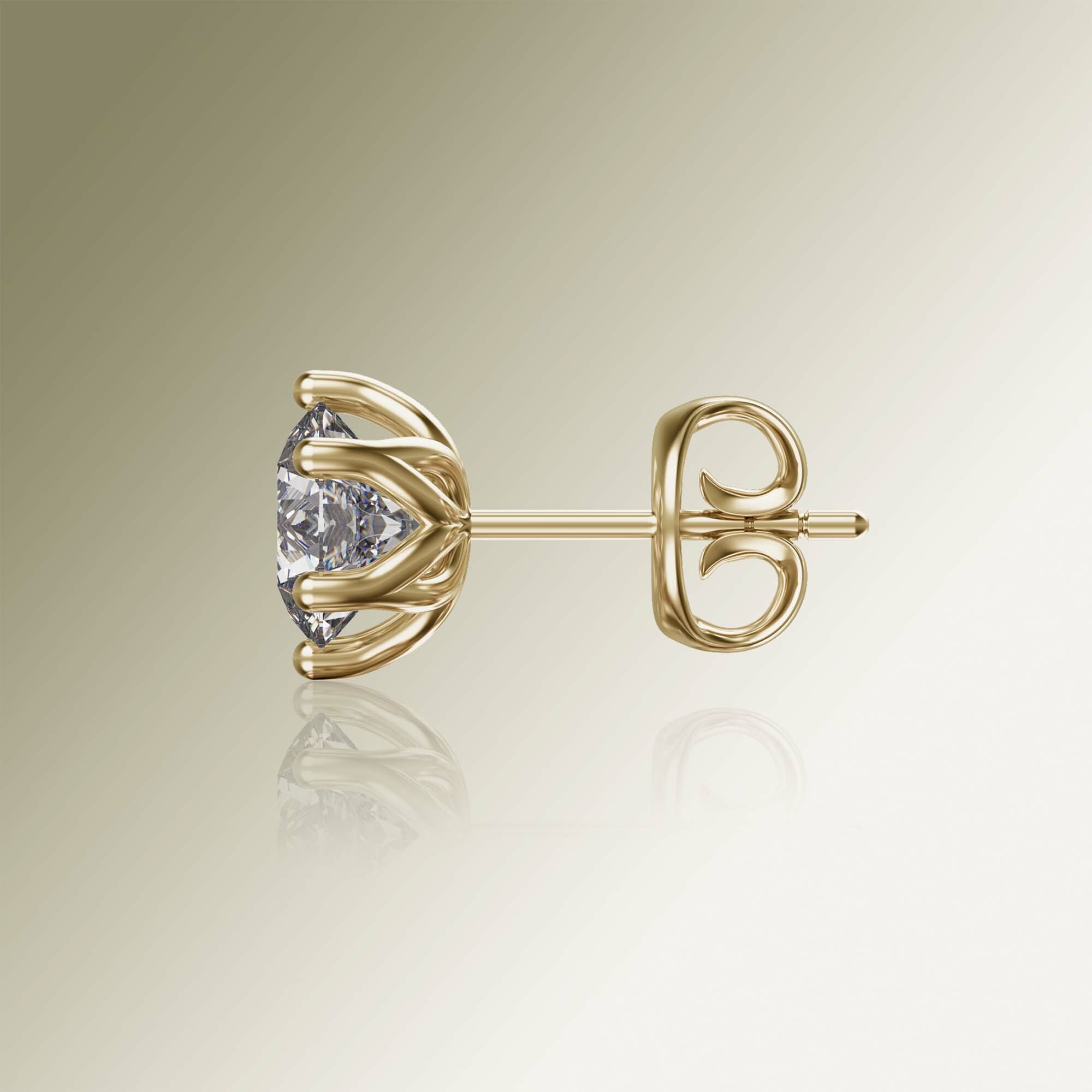 Yellow Gold 6-Claw Round Diamond Earrings