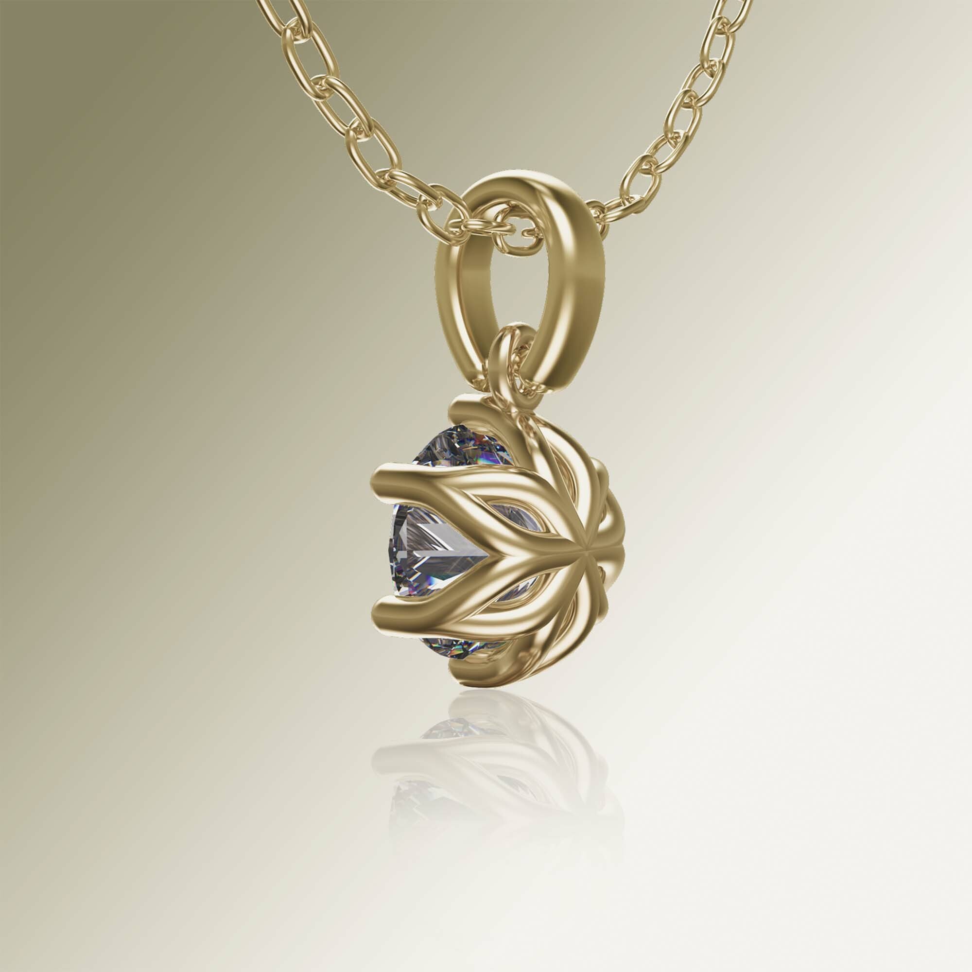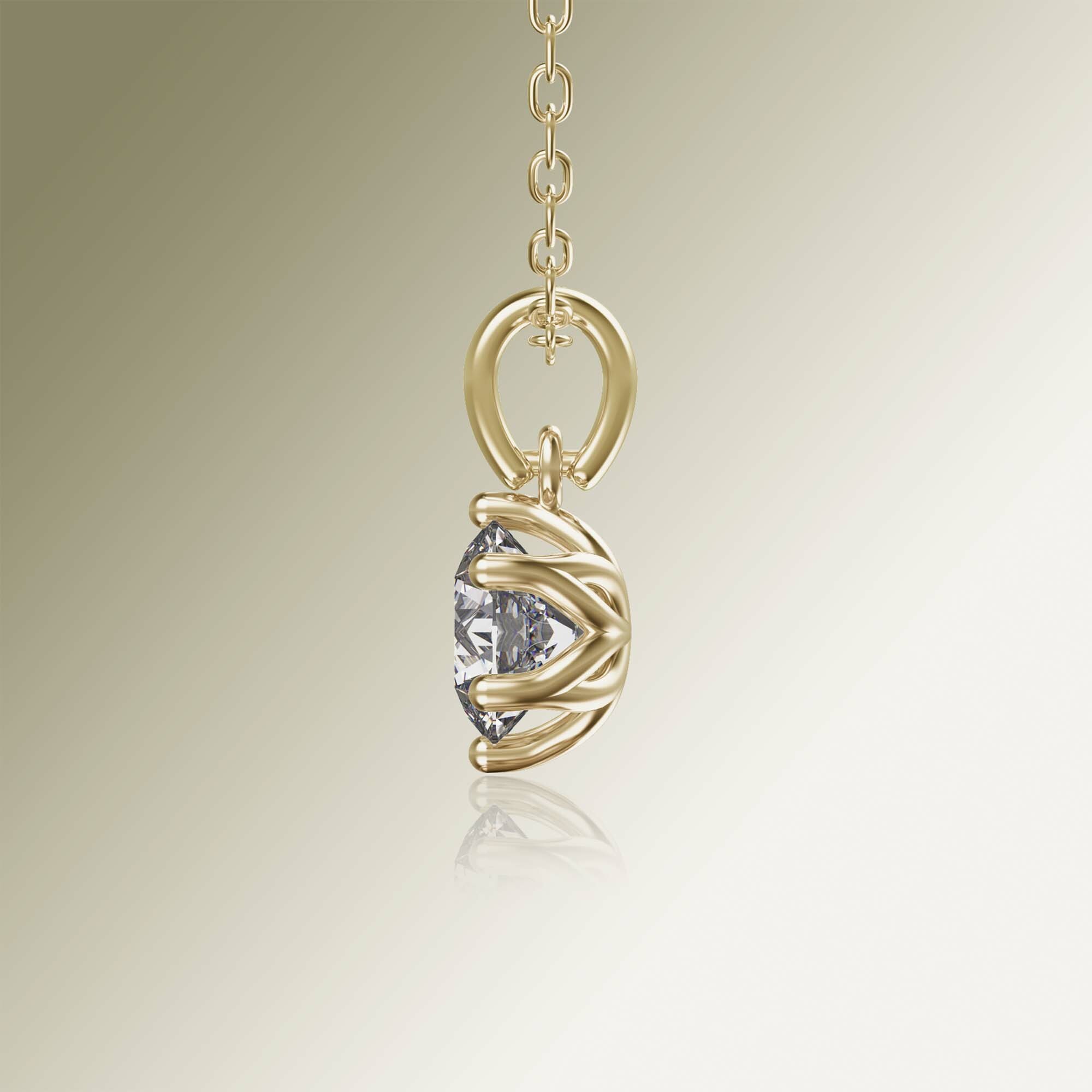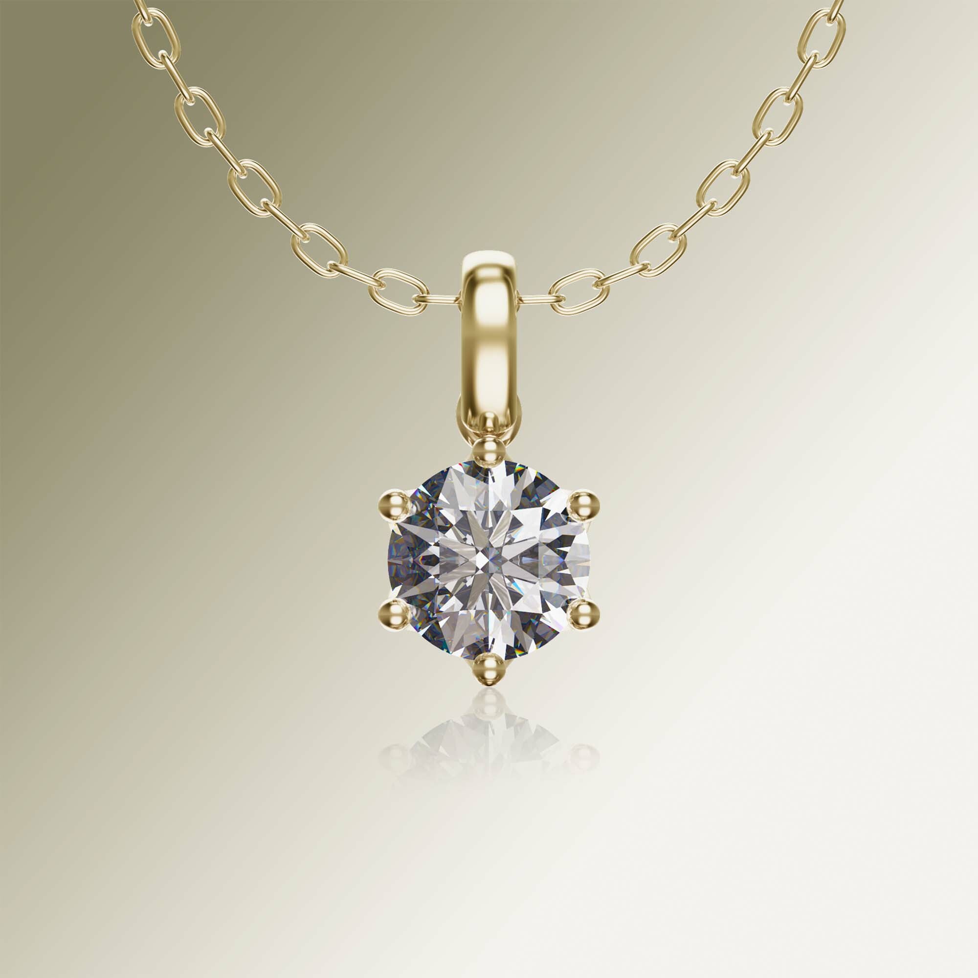 Yellow Gold 6-Claw Solitaire Round Diamond Pendant